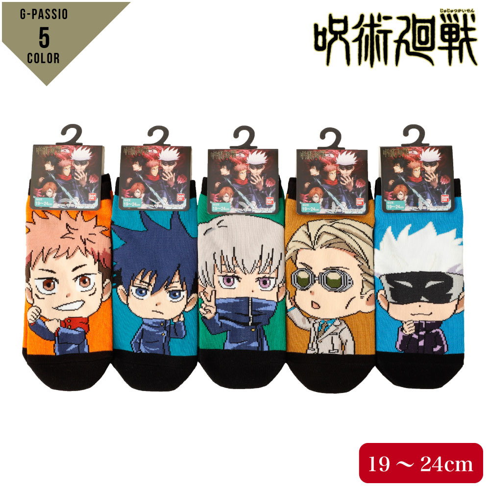 【ゆうパケット便送料無料】呪術廻戦 ソックス 靴下 キッズ レディース スニーカー丈 19~24cm デフォルメ 男の子 女の子 婦人 漫画 アニメ グッズ 領域展開 虎杖悠仁 伏黒恵 五条悟 狗巻棘 七海建人 オレンジ ブルー グリーン イエロー マルチ