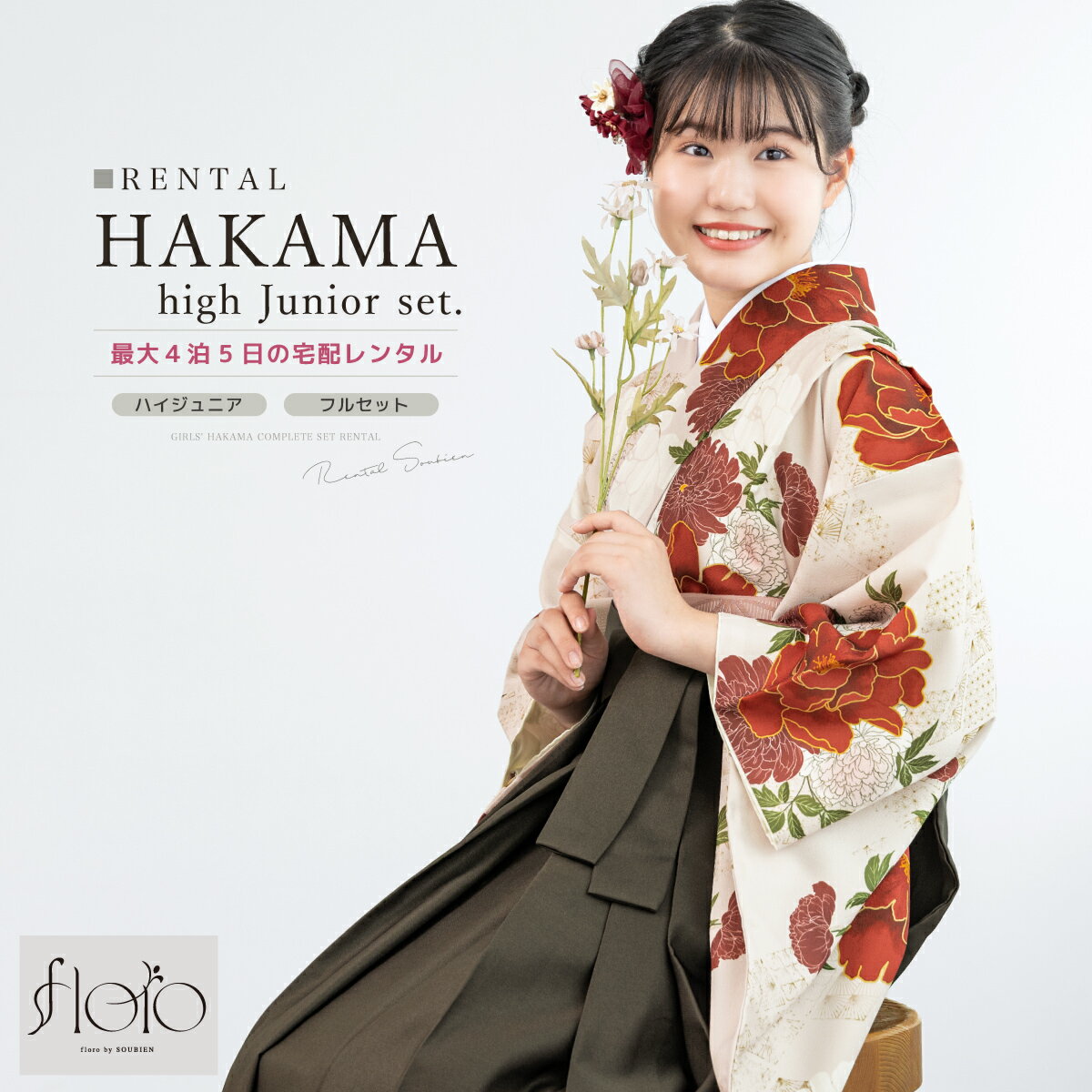 【スーパーSALE限定☆最大3000円クーポン配布中☆】【レンタル】袴セット 卒業式 袴 小学生 女の子 ジュニア フルセット 着物 floro 花柄 ベージュ 赤 グレー 13歳 140 150 160 中学生 子供 着物セット はかま 和装 和服 ジュニア袴 創美苑 往復送料無料