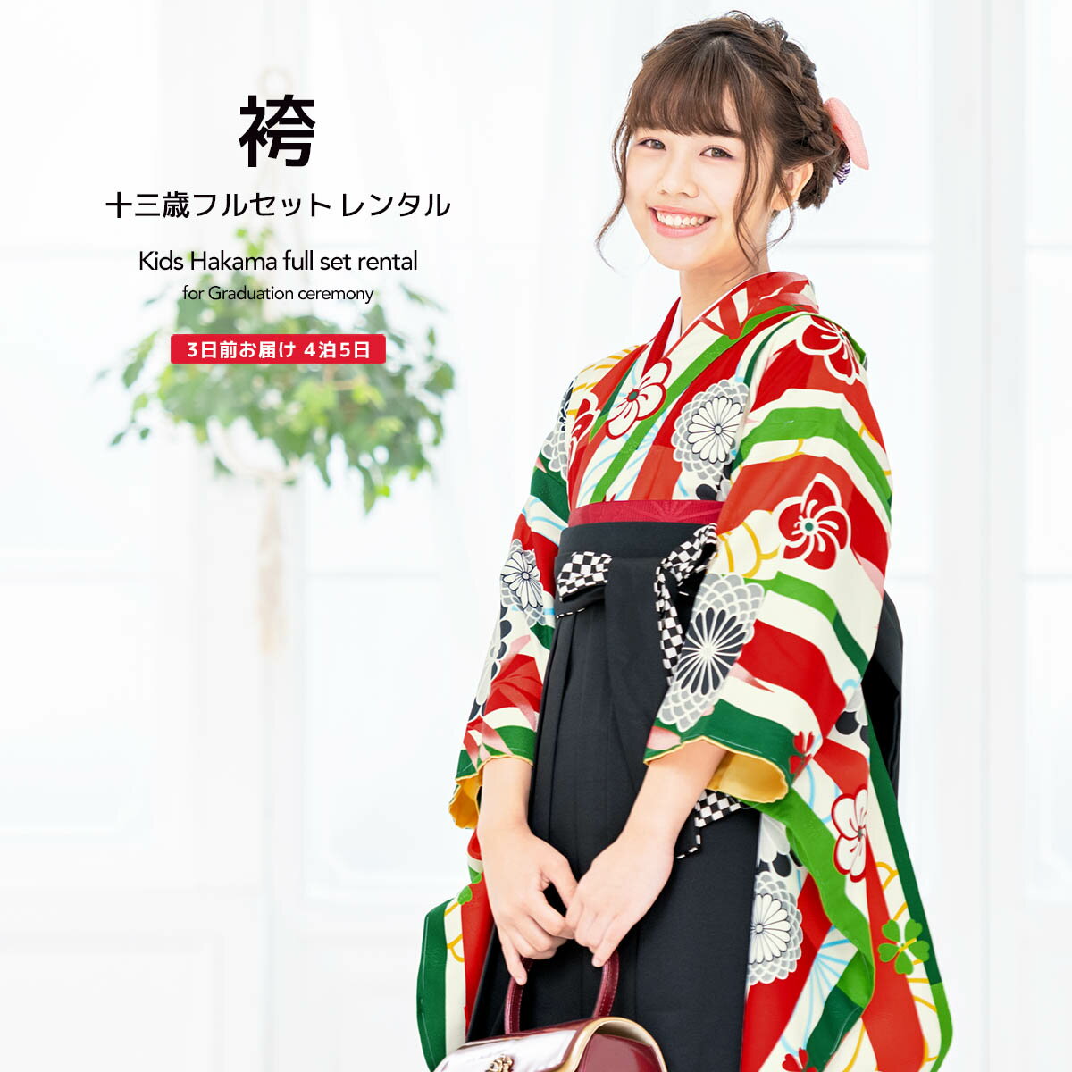 【先着20%OFFクーポン!】100名限定☆イーグルス感謝祭特別クーポン【レンタル】袴セット 卒業式 袴 小学生 女の子 ジュニア フルセット 着物 オレンジ 緑 黒 菊 梅 桜 花 縞 13歳 十三参り 子供 着物セット 和装 和服 中学生 創美苑 往復送料無料