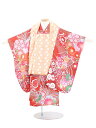 レンタル 七五三 着物 3歳 被布 セット 正絹 3388 紅一点 ピンク×オレンジ 梅鈴 新品足袋 プレゼント 往復送料無料