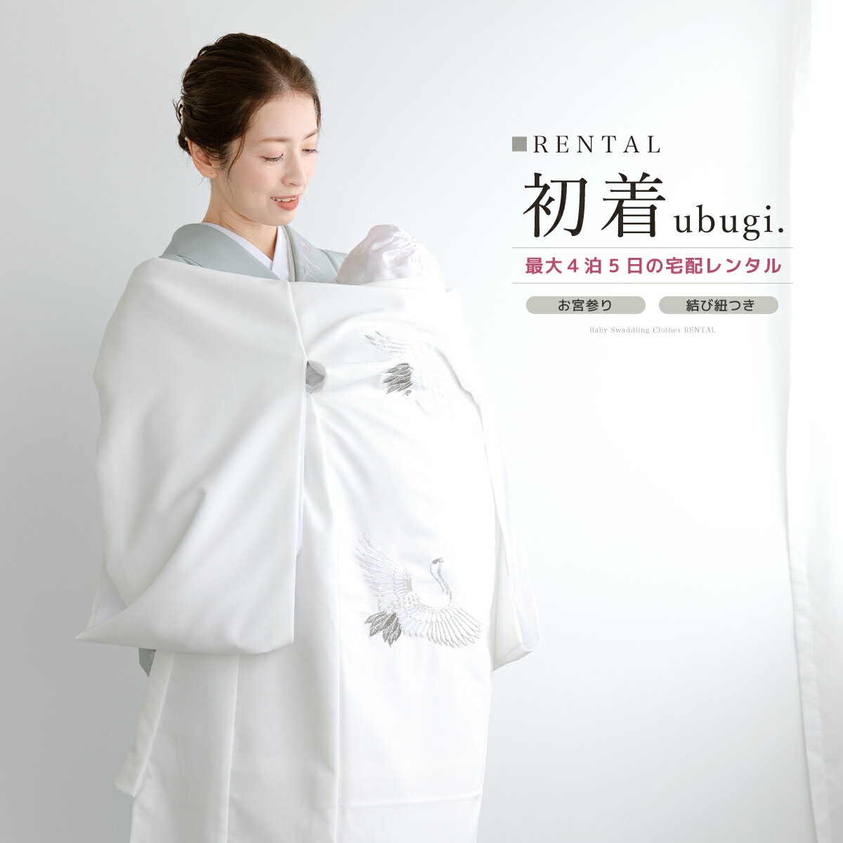 【スーパーSALE限定☆最大3000円クーポン配布中☆】【レンタル】 お宮参り 女の子 レンタル 産着 フルセット 白 鶴 金駒刺繍 無地 掛け着 うぶぎ 祝着 記念撮影 子供着物 産着セット 祝着セット 赤ちゃん 祝い着 帽子 よだれかけ 創美苑 往復送料無料