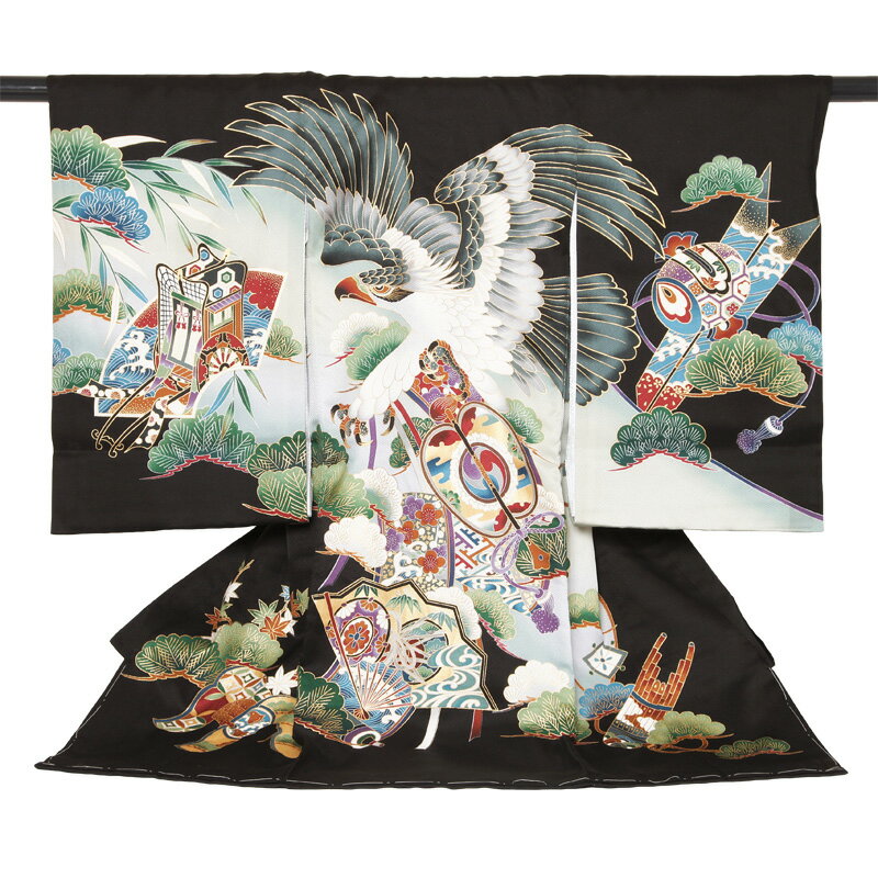 お宮参り レンタル 男の子(産着)躍鷹松上祝着レンタル(着物:黒色)お宮参り レンタル ベビー お宮参り レンタル 産着 お宮参り レンタル 祝着 レンタル【レンタル】【b】