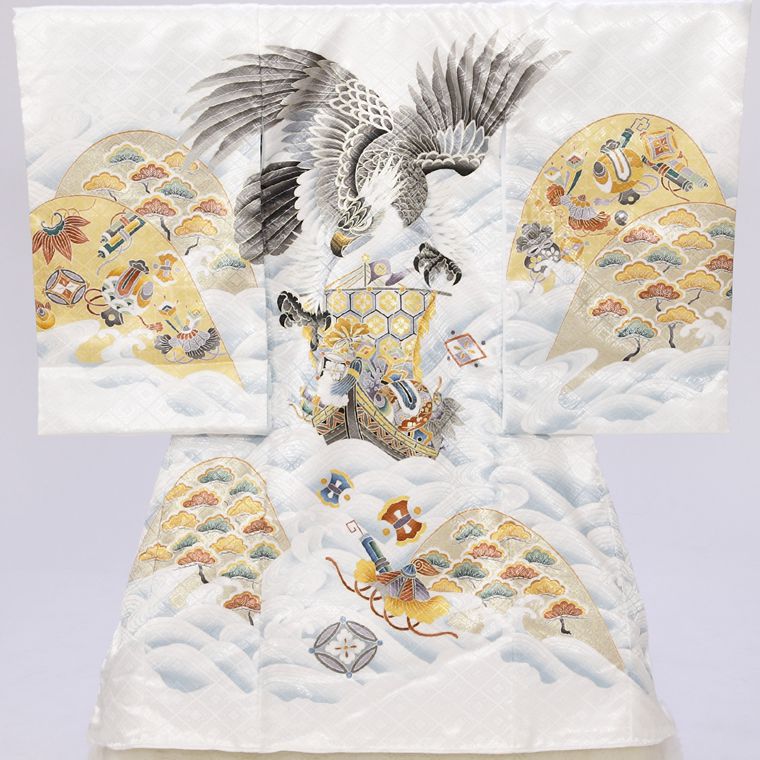 お宮参り 着物 男の子[鷹に波 白色] 産着セット(紐付きの着物+長襦袢) 着せ方マニュアル付き お宮参り 着物 男の子 HAL