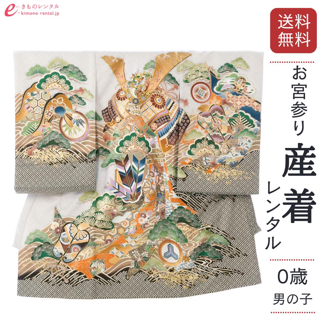 【レンタル】 鷹 宝船 産着レンタル 着物レンタル 祝着レンタル お宮参り 簡単着せ方マニュアル 産着 赤ちゃん 着物 男の子用 1n82