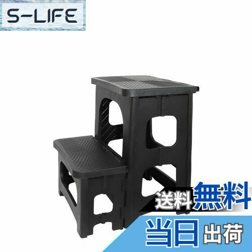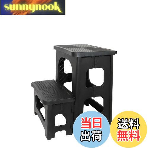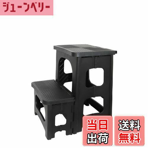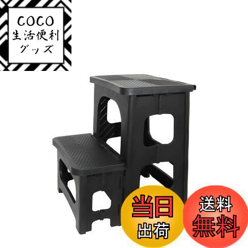 【送料無料】GOODCHI 踏み台 脚立 折りたたみ式 ステップ台 2段 ポリカーボネート製 耐荷重150kg 高さ43cm 軽量 滑り止 折りたたみチェア 玄関台 洗車 踏み台 (ブラック)