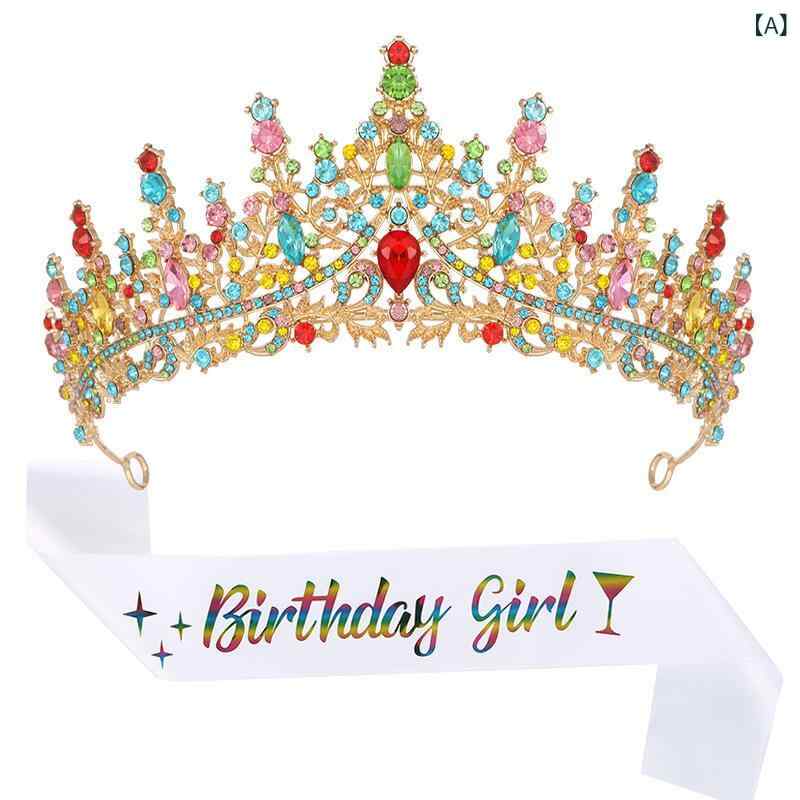 ティアラ レディース サッシュベルト 王冠 カラフル ホワイト ブラック 誕生日 結婚式 パーティー 髪飾り ヘッドドレス クリスタル 豪華 華やか 撮影用 小道具 ジュエリー 合金 高級感 キラキラ かわいい