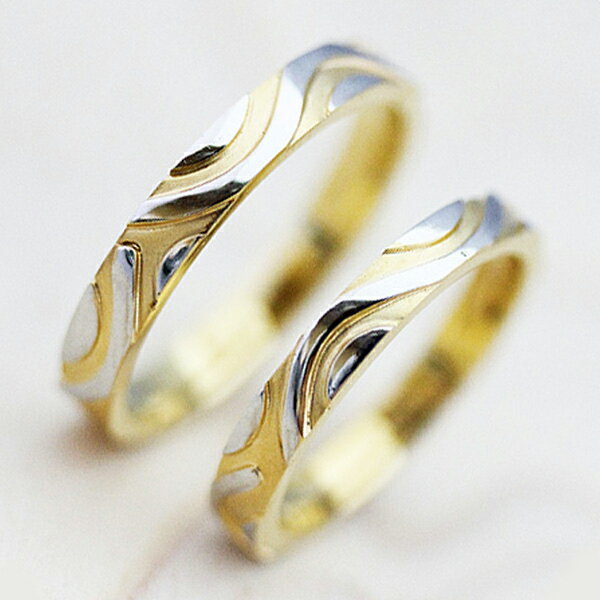 結婚指輪 ペアリング イエローゴールド プラチナ コンビ K18YG PT900 指輪 ストレート 木目柄 模様 曲線 サイズ0.5刻み 記念日 プレゼント 恋人 クリスマス マリッジリング