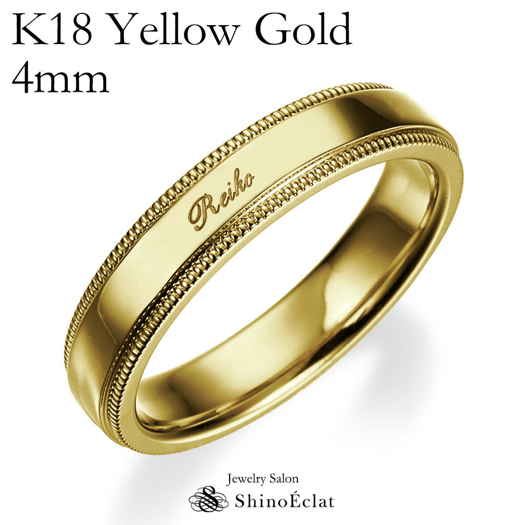結婚指輪 ゴールド K18YG(イエローゴールド) ミルグレイン エッジ・マリッジリング 4mm 鍛造 ミル打ち 幅広 太め 太い 刻印無料 gold ウェディング バンドリング 指輪 ring シンプル 単品 送料無料