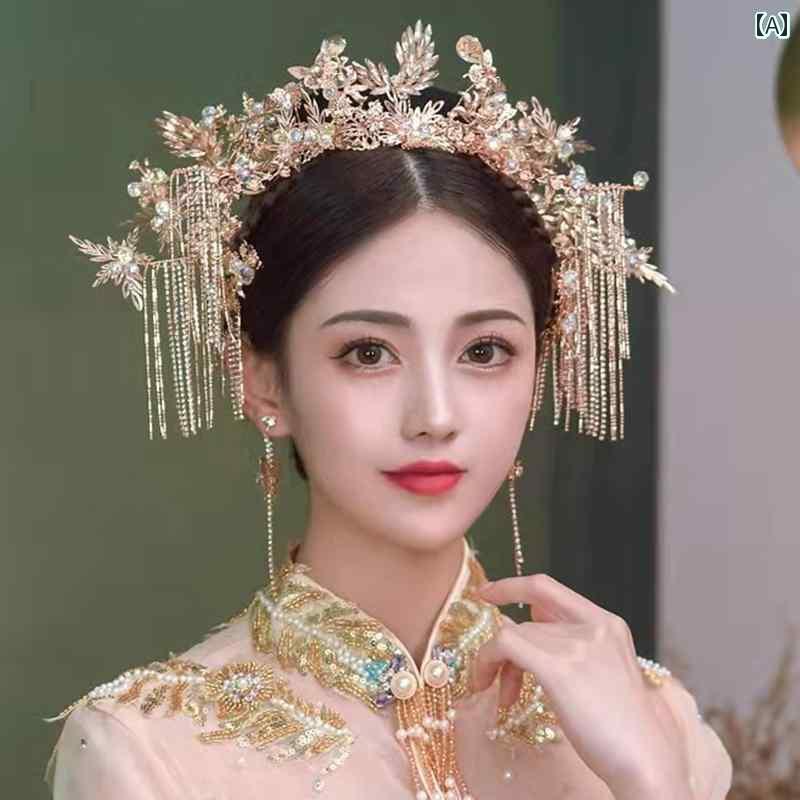 ブライダル ヘッドアクセサリー 結婚式 ウェディング パーティー 婦 花嫁 舞台 小道具 コスプレ チャイナ風 ヘッド ウェア シンプル スーツ チャイナ ドレス ィ 乾杯 スーツ エンゲージメント フェニックス クラウン タッセル ヘア アクセサリー