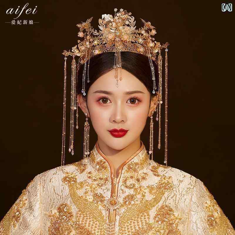花嫁 Xiuhe 頭飾り チャイナ風 グランド クイーン 結婚式 ステ ッッ キング フェニックス クラウン Xiuhe スーツ ドラゴン フェニックス ガウン アクセサリー