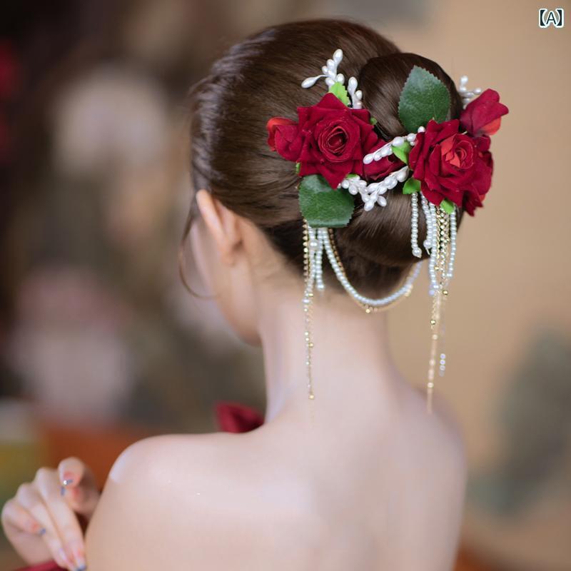 花嫁 Xiuhe 頭飾り チャイナ風 起毛 フラワー スーツ ヘアピン 結婚式 Xiuhe スーツ 乾杯 スーツ ヘア アクセサリー