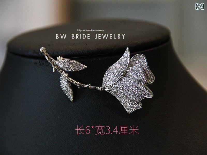 ブローチ アメリカ 人工宝石 精巧 輝く ドレス スーツ ジルコニア ディナー アクセサリー キラキラ ピン 薔薇 立体 洋服 刺 飾り ビジュー 紅葉 葉 パーティー お祝い事 入園式 卒業式