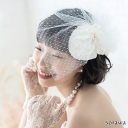 当店の国産コサージュネックレスは1つ1つ心のこもった手作り品。全てのヘッドドレスは、まず1枚の生地から始まります。サテンやオーガンジーなど晴れの日にふさわしい高級生地を選び1デザインで数種類の生地を組み合わせていきます。中国製などの安いコサージュとは違い、透明感やしっとりした手触りなどを考え、ドレスに合う生地をセレクトしています。 生地で張りや光沢などを考え生地選びをしたら、国内で染色します。同じ染色の色や倍率でも生地によって染まり方が違います。何種類も倍率を変えて染色してもらい、ウェディングにふさわしい素敵な色合いになるようにこだわっています。この時点でウェディングアイテムだけの生地に仕上がります。 コサージュやヘッドドレスではいろんな花や葉っぱの形を使います。型抜き作業も国内で1つ1つ丁寧に行われています。その型も何千種類の中からウェディング用にセレクトされたもの。筋の違いや型の深さで凹凸の具合や雰囲気が違ってきます。「もう少し丸っこく」「もう少しふわっと」など指定を繰り返してヘッドドレスが出来上がっていきます。 大きさや用途、作りたい雰囲気などを伝え、たくさんのパーツ試作をしてパーツにこだわりを詰めていきます。ウェディングアイテムのヘッドドレスは「きらめき」や「ジュエリー感」、「モード感」をテーマにしているので、パールやクリスタルなどを中央に入れた花パーツにしました。顔周りのアイテムなので、花嫁の肌の色を引き立てる色や生地の組み合わせにこだわりました。 サイズ:全体横幅(約)22cm、全体縦(約)10cm 透き通る花びらには、1枚1枚ワイヤーが入っているので自由な形に広げることができます。 大輪カサブランカをモチーフとしたスタイリッシュなデザインは、上品さと華やかさを演出してくれます。花びらには透き通るオーガンジー素材を、中央にはキラッと輝くジルコニアとパールを使用しています。コームタイプになっています。 花びらの数や手触り、ビーズの数や生地の染色まで何回も試作を重ね、ウェディングアイテムオリジナルの素敵なシューズクリップに仕上がりました。色もホワイト系×オフホワイト系のミックスなので、ホワイトドレスにもオフホワイトドレスにもぴったりです。