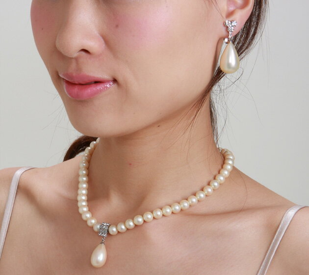 【ネックレス&イヤリング-レンタル】ブライダル パール オフパール&シルバー ウェディング ウエディング 結婚式 ウェディングドレス アクセサリー パーティ ドレス 2次会 755【レンタル】