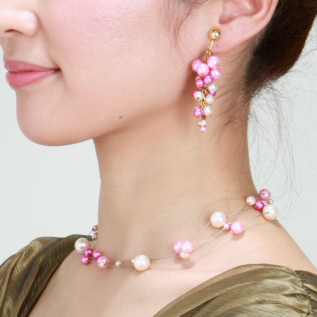 【ネックレス&イヤリング-レンタル】ウェディング アクセサリー ビーズ/クリスタル ウェディング ウエディング 結婚式 ウェディングドレス アクセサリー ウェディングアクセサリー ブライダルアクセサリー 102fma【レンタル】