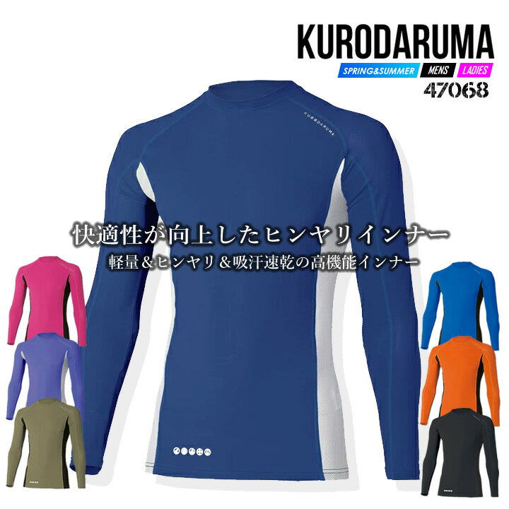 【5%OFFクーポン配布★11/25-26】【即日発送】インナーシャツ 長袖 アンダーレイヤー クロダルマ 47068 メンズ 接触冷感 吸汗速乾 軽量 ストレッチ 熱中症対策 アンダーシャツ 春夏 コンプレッション スポーツ 作業着 インナーウェア 作業服 068・069 シリーズ