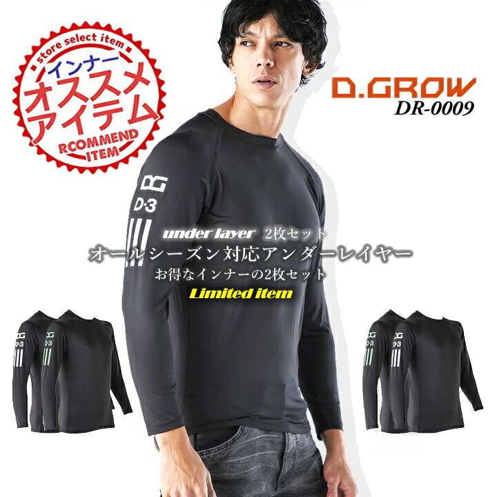 【5%OFFクーポン配布★11/25-26】【即日発送】インナーシャツ ストレッチ アンダーシャツ 接触冷感 吸汗速乾 抗菌消臭 クロダルマ DR-0009 【2枚セット】インナーウェア コンプレッション 作業着 作業服【送料無料】