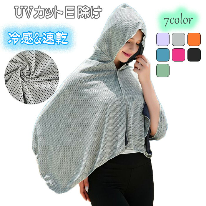 冷感ポンチョ紫外線対策 UVカット熱中症対策冷感アイテム サマーカーディガン接触冷感 暑さ対策グッズ 体カバーひんやりタオル クールタオル フード付き 速乾吸水 ガーデニング ポンチョ スポーツタオル 無地 夏用 海水浴 ビーチ アウトドア