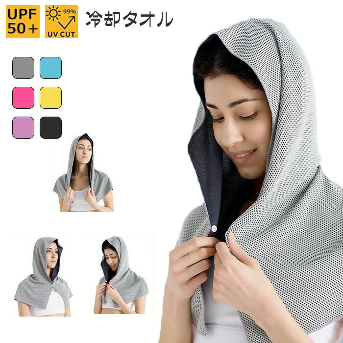 冷却タオル 冷感タオル フード付き 冷却 紫外線対策 UVカット 優れた吸水性・速乾性 ポンチョ クールケープ 冷感クールタオル 抗菌 防臭加工ひんやり 涼しい 熱中症対策 スポーツ 部活 自転車 ジム暑さ対策グッズ 無地スポーツタオル