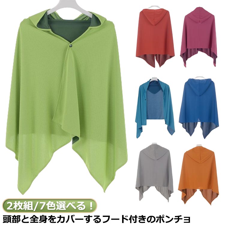 2枚組/7色選べる!頭部と全身をカバーするフード付きのポンチョ有害な紫外線から身を守るのに最適な簡単な服装どんな服の上からも簡単に着用でき、涼しく快適な外観を実現涼しく快適な生地で作られた日焼け止めケープは、暑い季節でも爽やかでドライな状態を保ち、一日中快適な着用感バックルボタンで簡単に固定できるため、手を解放して快適に動き回る非常に軽量で薄いため、外出先での使用に最適 サイズ 2枚組 サイズについての説明 60*145cm ※サイズ表の実寸法は商品によって1-3cm程度の誤差がある場合がございます。※使い方法についてSTEP1:ぬらす本体にしっかり吸水させてください。STEP2:しぼる水が滴らない程度に軽くしぼってください。STEP3:ふる数回強く振ってください。生地温度が低下し、冷たくなります。冷たくなくなったら、STEP1~3を繰り返してください。【濡らしてさらに冷感】1.濡らす→2.絞る→3.振るの手順でさらに冷感効果を高めることができます。 素材 ポリエステル 色 グリーン コーラレッド ローズピンク オレンジ ライトブルー ダークブルー グレー 備考 ●サイズ詳細等の測り方はスタッフ間で統一、徹底はしておりますが、実寸は商品によって若干の誤差(1cm〜3cm )がある場合がございますので、予めご了承ください。 ●商品の色は、撮影時の光や、お客様のモニターの色具合などにより、実際の商品と異なる場合がございます。あらかじめ、ご了承ください。 ●製品によっては、生地の特性上、洗濯時に縮む場合がございますので洗濯時はご注意下さいませ。 ▼色味の強い製品によっては他の衣類などに色移りする場合もございますので、速やかに(脱水、乾燥等)するようにお願いいたします。 ▼生地によっては摩擦や汗、雨などで濡れた時は、他の製品に移染する恐れがございますので、着用の際はご注意下さい。 ▼生地の特性上、やや匂いが強く感じられるものもございます。数日のご使用や陰干しなどで気になる匂いはほとんど感じられなくなります。