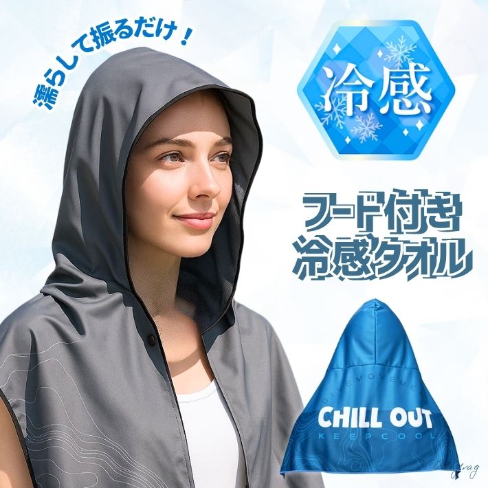 冷感タオル 冷却タオル 冷感 フード 冷却 クールタオル ひんやり 涼しい 熱中症対策 スポーツ UVカット 冷感繊維使用 冷感持続 吸汗速乾 携帯便利 暑さ対策グッズ 海辺 夏 旅行 冷感ポンチョ 丸洗いOK 送料無料