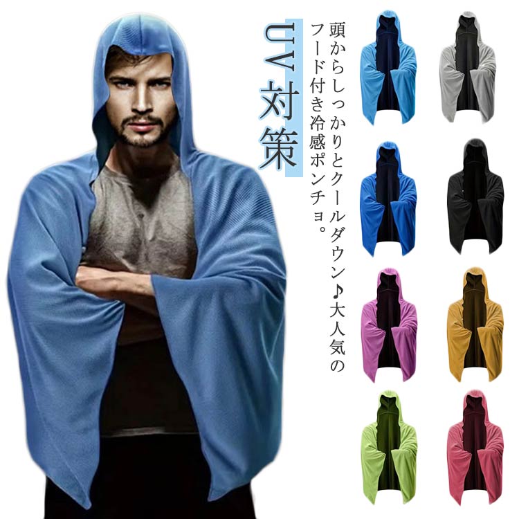 冷感ポンチョ ひんやり 抗菌防臭 冷却 冷感 冷感タオル クールパーカー クールケープ スポーツ観戦 吸水 蒸れない 速乾 暑さ対策 通気性 冷感ストール 軽量 クールポンチョ 熱中症対策 グッズ 運動会 濡らす ジョギング プール 海 アウトドア