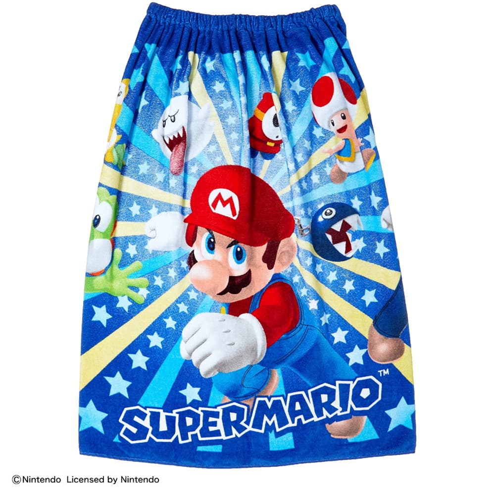 巻きタオル スーパーマリオ マイクロファイバー 60×120cm ( マリオ タオル プール ラップタオル キッズ キャラクター 巻き 吸水 速乾 マキタオル プール用タオル 海水浴 ビーチ キャラクタータオル 男の子 )