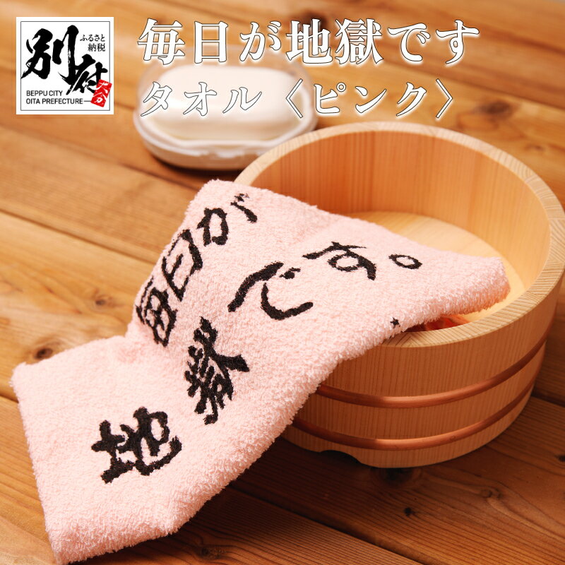 【ふるさと納税】タオル オリジナルスポーツタオル ピンク 毎日が地獄です 綿 オリジナル スポーツタオル グッズ たおる 桃色 人気 お土産 贈り物 プレゼント 贈答 贈答品 ギフト 温泉 お風呂 ロゴ ロゴ入り 日本語ロゴ 国産 別府市 大分県 送料無料
