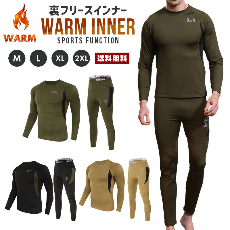 【送料無料】裏起毛 インナー 上下セット 【メンズ セットアップ スポーツウェア 下着 暖か WARM ウォーム ヒート フリース 薄手 保温 防寒 柔軟 透過性 アウトドア トレッキング ウィンタースポーツ 男性 紳士 ギフト】【コンビニ受取対応商品】
