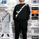 スーパーセール最大3000円オフクーポン有! チャンピオン スウェット 上下 メンズ セットアップ ブランド Wrap-Air ラップエアー Champion C3AS001 ストレッチ 保温 クルーネック ビッグロゴ プルオーバー 通気 トレーナー 軽量 ダンボールニット ジョガーパンツ 新作