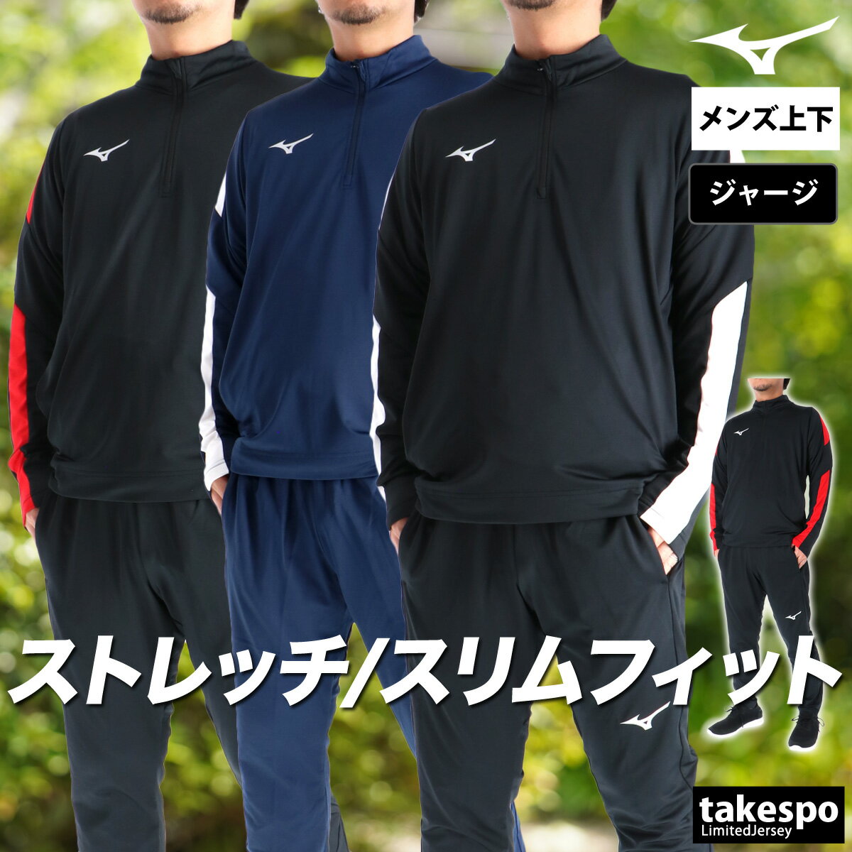 スーパーセール最大3000円オフクーポン有! ミズノ ジャージ 上下 メンズ セットアップ ブランド ジャージ上下 Mizuno P2MCC580 サッカー フットサル 速乾 吸水 吸汗 ドライ ストレッチ ハーフジップ 黒 トラックスーツ サイドライン 新作 上下セット 大きいサイズ