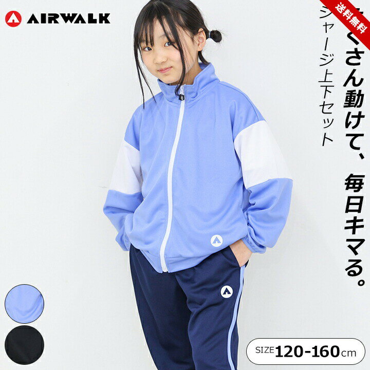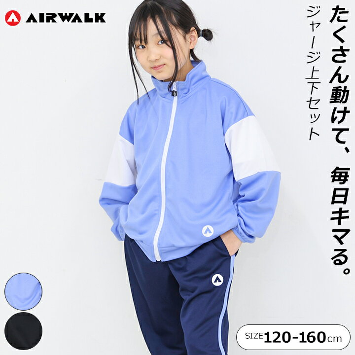 エアーウォーク ジャージ キッズ ジュニア 女の子 120cm 130cm 140cm 150cm 160cm ブラック サックス AIR WALK ウォームアップスーツ ロゴ ブランド スポーツ 春秋 セットアップ 小学校 運動 小学生 中学生 幼稚園 保育園