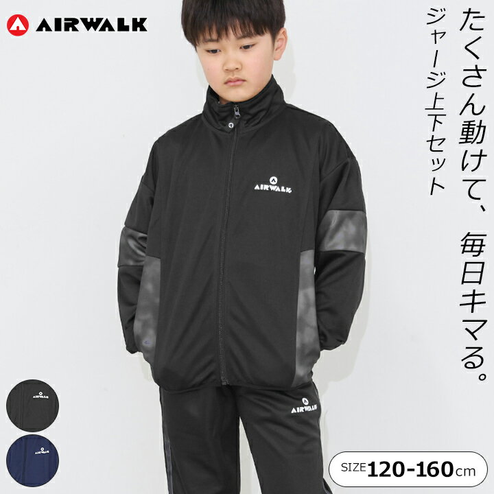 ジャージ 上下セット エアーウォーク キッズ ジュニア 男の子 120cm 130cm 140cm 150cm 160cm ブラック ネイビー AIR WALK ウォームアップハーフパンツ ロゴ ブランド スポーツ 春秋 セットアップ 小学校 運動 送料無料