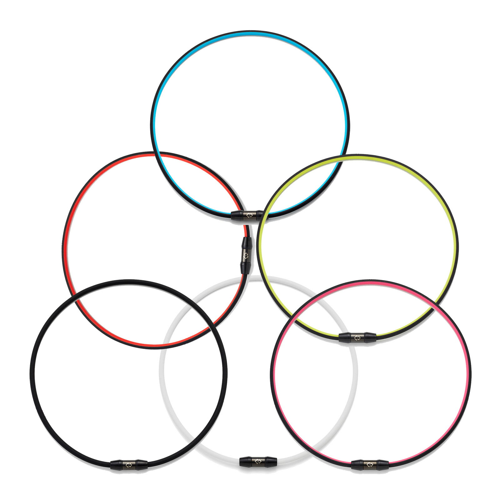 スポーツシーンをイメージした「コラントッテSPORTS」ブランドの磁気ネックレス。 動きを妨げないシンプルな形状で、スポーツ時にも着用しやすい軽量タイプです。 ループには軽快でアクティブな印象の「バイカラータイプ」を新採用。 (※4アイテム)。 水に強いシリコン素材でウォータープルーフ仕様なのでスポーツ時も安心です。 φ4のスリムタイプループに140ミリテスラ× 8個の希土類永久磁石を首周りに添うように内蔵しています。