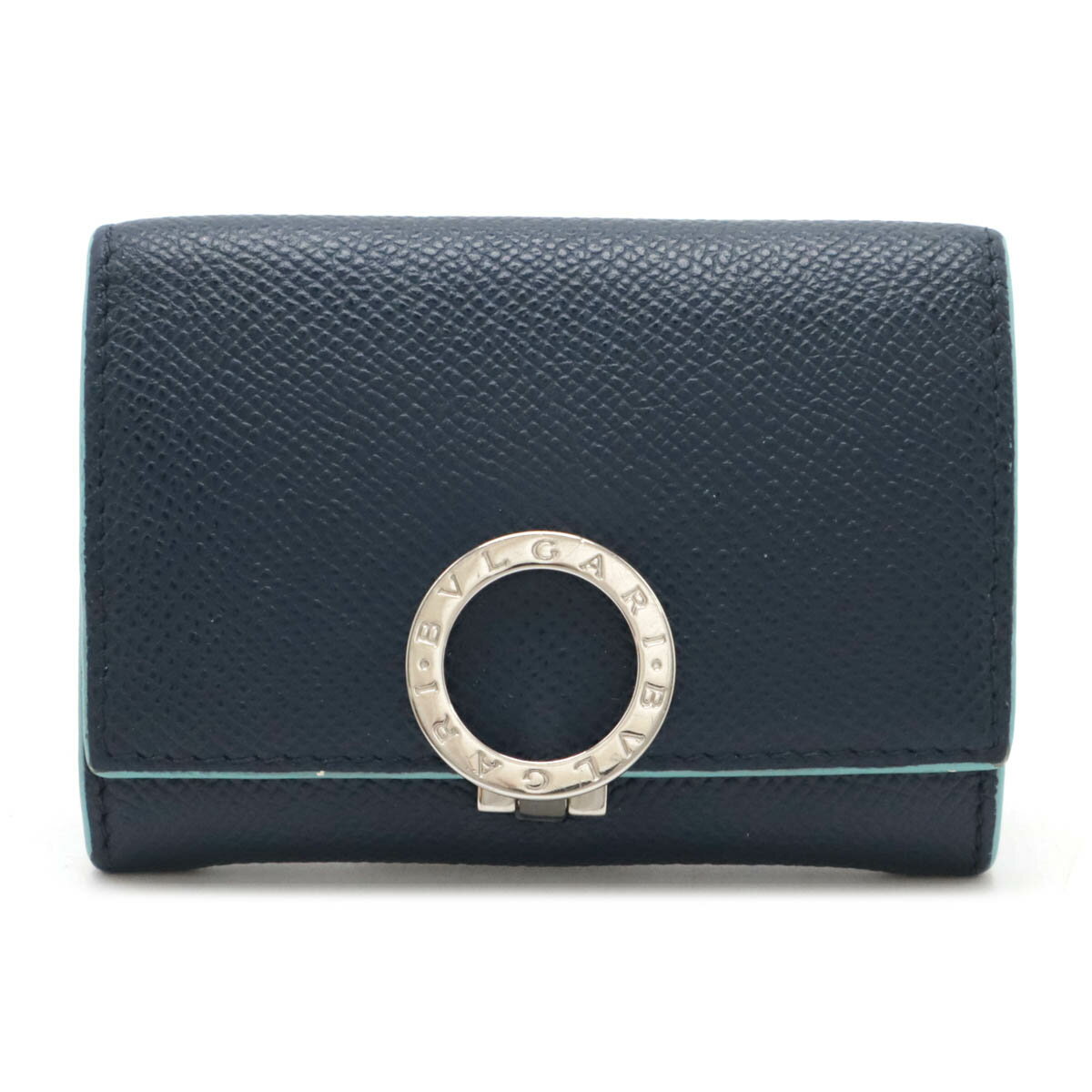 BVLGARI ブルガリ ブルガリブルガリ ロゴクリップ コインケース 小銭入れ コインパース グレインレザー ネイビー ライトブルー シルバー金具 292689 【中古】