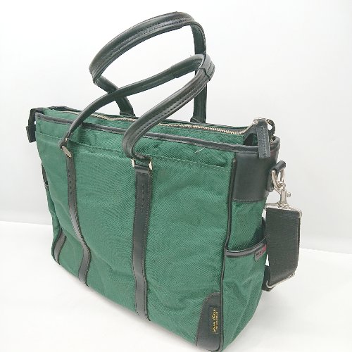 ■ Θ PREM-EDITOR プレムエディター 2way ショルダー トート 書類バッグ グリーン メンズ E 【中古】