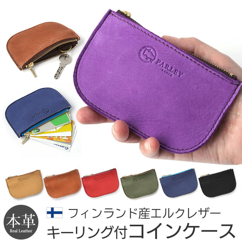 コインケース キーリング付 革 メンズ 本革 日本製 レザー カードケース 小銭入れ カードも入る 薄い 小さい ミニ 薄型 カード 免許証入れ ブランド レディース 革 おしゃれ ファスナー 手のひら かわいい プレゼント ギフト Parley パーリィー 財布 エルク ネイビー 紫 緑