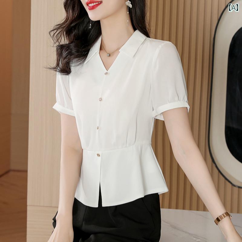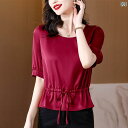 シンプル ブラウス 半袖 シルクシャツ レディース 半袖 夏 スタイル マルベリー シルク ブラウス 万能 スリム トップ ウエスト ショート サテン Tシャツ