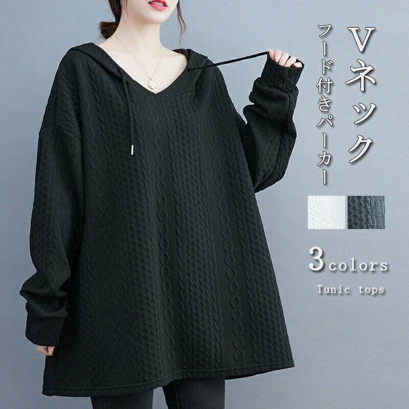 チュニック パーカー トップス レディース 無地 長袖 プルオーバー Vネック 秋冬 キルティング コート チュニック丈 アウター ゆったり キルティングコート Vネックコート フード付き 大きいサイズ 体型カバー ドルマン ボリューム ブラウス コーデ 秋物 冬 防寒