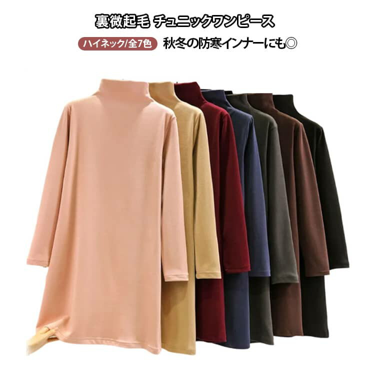 ワンピース 大人可愛い 秋冬 レディース チュニック タートルネック ハイネック 裏起毛 ロングT 暖か 冬 インナー aライン 60代 あったか 秋 ハイネックチュニック フリース きれいめ 無地 シンプル ロング丈 40代 50代 チュニック 70代 婦人服