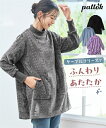 トップス チュニック レディース ふんわりあたたかケーブルフリースモックネック 冬 体型カバー お尻隠れる スモーキーブルー/チャコールグレー/ライトパープル/黒 ニッセン nissen