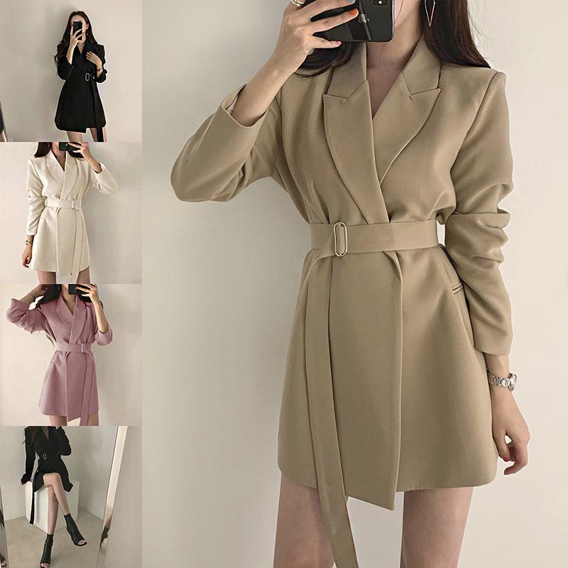 コート レディース 韓国 テーラード ロング丈 ポリエステル ゆったり 無地 アウター 春秋 おしゃれ かわいい カーキ ベージュ ブラック