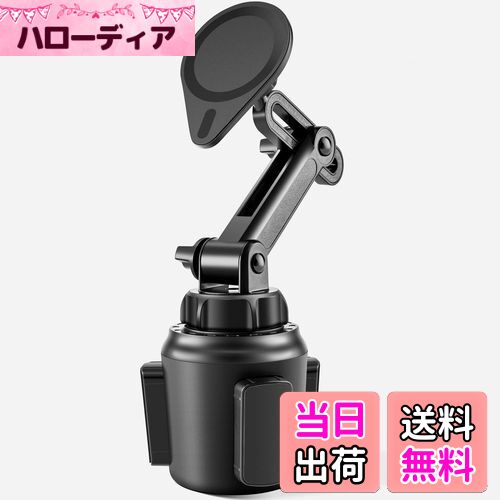 enGMOLPHY 車載ホルダー スマホ マグネット 車ドリンクホルダー 磁気カーカップ携帯ホルダー片手操作 /360度 回転 [ネック伸縮調整可能] 磁石 iPhone12/13/14/15のMagSafe全シリーズ /11/XS/XR/X/SE2/Samsung/Sony Xperiaなど4-7インチのスマホに適合 充電不可 ブラック