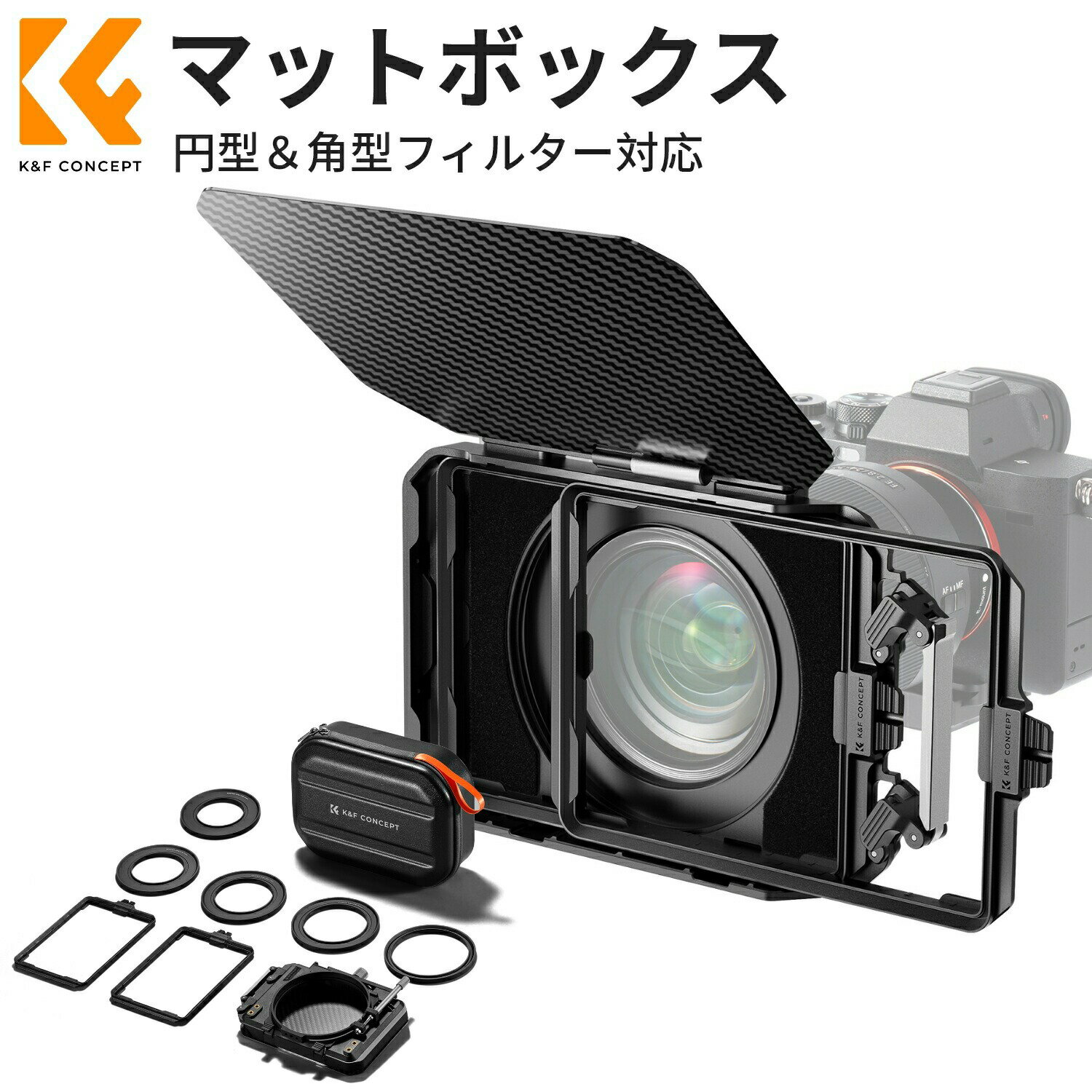 Max10%OFF配布中!! K&F CONCEPT ミニマットボックス ND4+ND32 NDフィルター 4x5.65インチ Mini Matte Box カーボンファイバー製 67mm/72mm/77mm/82mm/95mmのアダプターリング付き 2枚の角型フィルター装着可能 収納ケース付属 (Nano-Xcel)