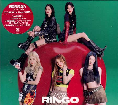 【ストーリー】初の日本アルバム『RINGO』には韓国曲のJP ver.の他、日本オリジナルの新曲が4曲収録されている。 タイトル曲の「RINGO」はグリム童話のストーリーをテーマに、「おとぎ話のように決められたストーリーではなく、自分のストーリーを作っていこう」というITZYらしい強さを表現した曲となっている。 【収録内容】 【CD】1)RINGO[3:29]2)Sugar-holic[3:03]3)Playlist[3:44]4)STYLE[3:03]5)Voltage[3:42]6)Spice[3:14]7)Blah Blah Blah[3:08]8)Can't tie me down[3:05]9)SNEAKERS -Japanese ver.-[3:01]10)Cheshire -Japanese ver.-[3:03]11)Trust Me (MIDZY) -Japanese ver.-[3:43] 【DVD】 1)RINGO (Music Video Making Movie)2)「RINGO」 Jacket Shooting Making Movie3)Documentary of ITZY JAPAN DEBUT SHOWCASE “IT'z ITZY"【特典内容】初回限定盤A特典:トレーディングカード1枚ランダム封入(集合1種 ソロ5種 ユニット5種の全11種) 封入特典:歌詞ブックレット36p/特典応募シリアルナンバー1枚封入(有効期限切れ)タイトルRINGO 初回限定盤A / ITZY監督出演者ITZY受賞・その他発売日2023年10月18日発売元・レーベルワーナーミュージック・ジャパン仕様メディア形態CD、DVDリージョンコードAll言語字幕収録時間36分19秒/27分00秒JANコード4943674377503製品コードWPZL-32084/5