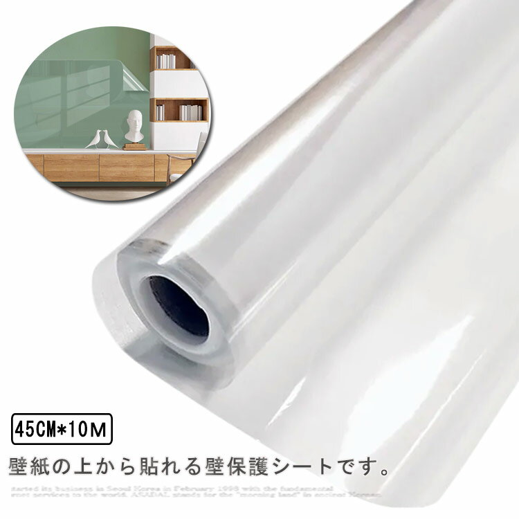 壁保護シート 45cm*10m 壁に貼る 傷防止 汚れ防止 爪とぎ防止 透明 壁紙 貼ってはがせる 保護フィルム ウォールステッカー キズ 汚れ対策 家具保護シート 貼るだけ 落書き対策 接着剤不要 はがせる 賃貸OK 目立たない