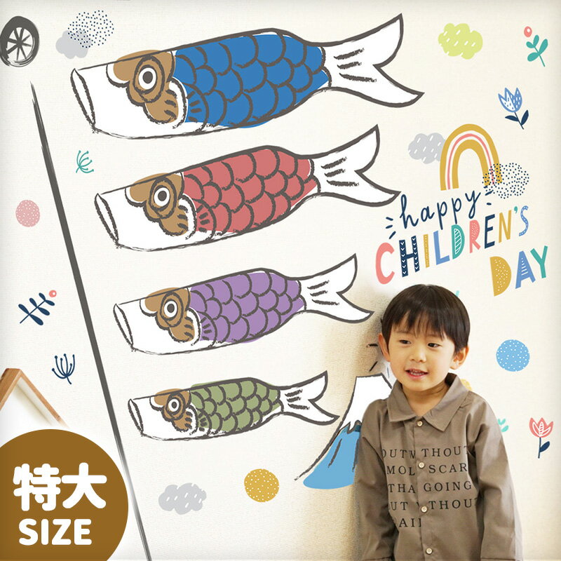 おまけ付き ウォールステッカー 特大サイズ【特大/Children's Day】 はがせる 壁 シール ステッカー 壁紙 飾り 飾りつけ おしゃれ 鯉のぼり こいのぼり 兜 節句 初節句 五月人形 室内 屋内 大きい モダン ギフト 写真 ベビー フォトブース 受注印刷