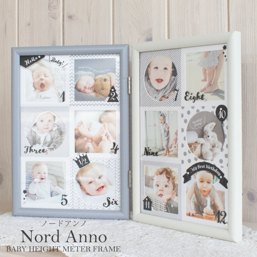 写真立て フォトフレーム ベビー おしゃれ 壁掛け ましかく 赤ちゃん 複数 かわいい バースデーフレーム 誕生日 モノトーン ベビー クリスタル 12窓 12ヶ月 フレーム 出産祝 ギフト NordAnno ノードアンノ ベビーフレーム Kishima キシマ