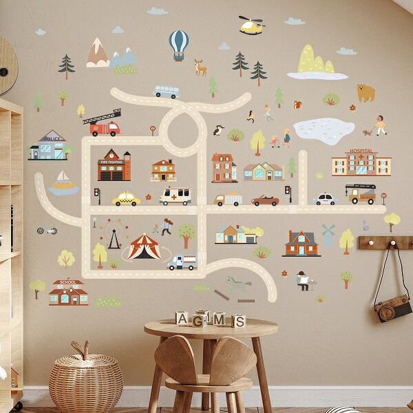 ウォールステツカー 子供部屋 動物 誕生日 かわいい 子ども 車 トイレ 馬 犬 くま 子供 知育 ベビー お風呂 シール 壁紙 インテリア 自動車 ステッカー はがせる 森 気球 飛行機 階段 玄関 雲 ウオールステッカー キッズルーム 道 道路 町 街 病院 クリニック アンティーク