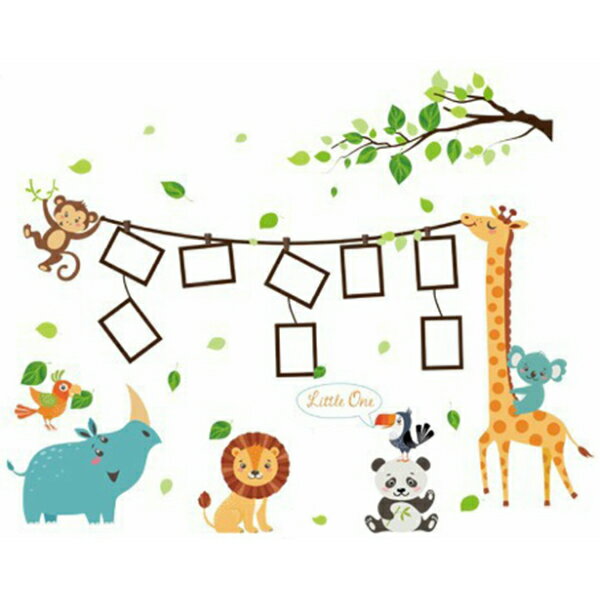 ウォールステッカー きりん 動物 木 子供部屋 誕生日 写真 フレーム 子供 フォトフレーム ベビー ステッカー ウォールシール 北欧 猫 鳥 シール 壁紙 英字 英文 緑 かわいい 風景 動物園 保育園 知育 写真枠 幼稚園 キリン 麒麟 ライオン パンダ サイ サル 猿 wallsticker